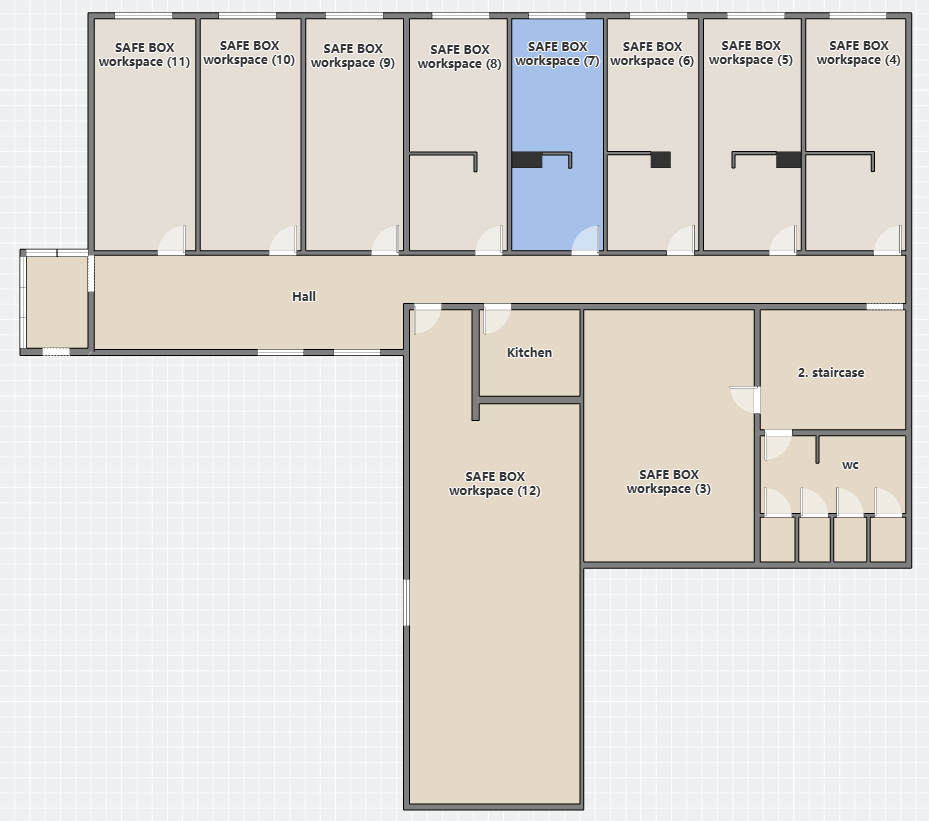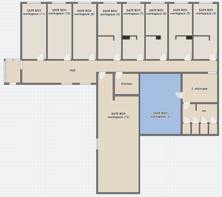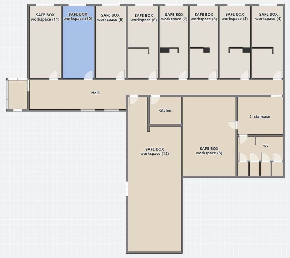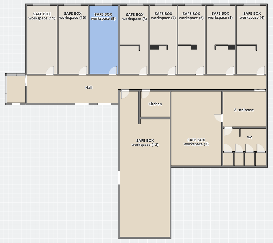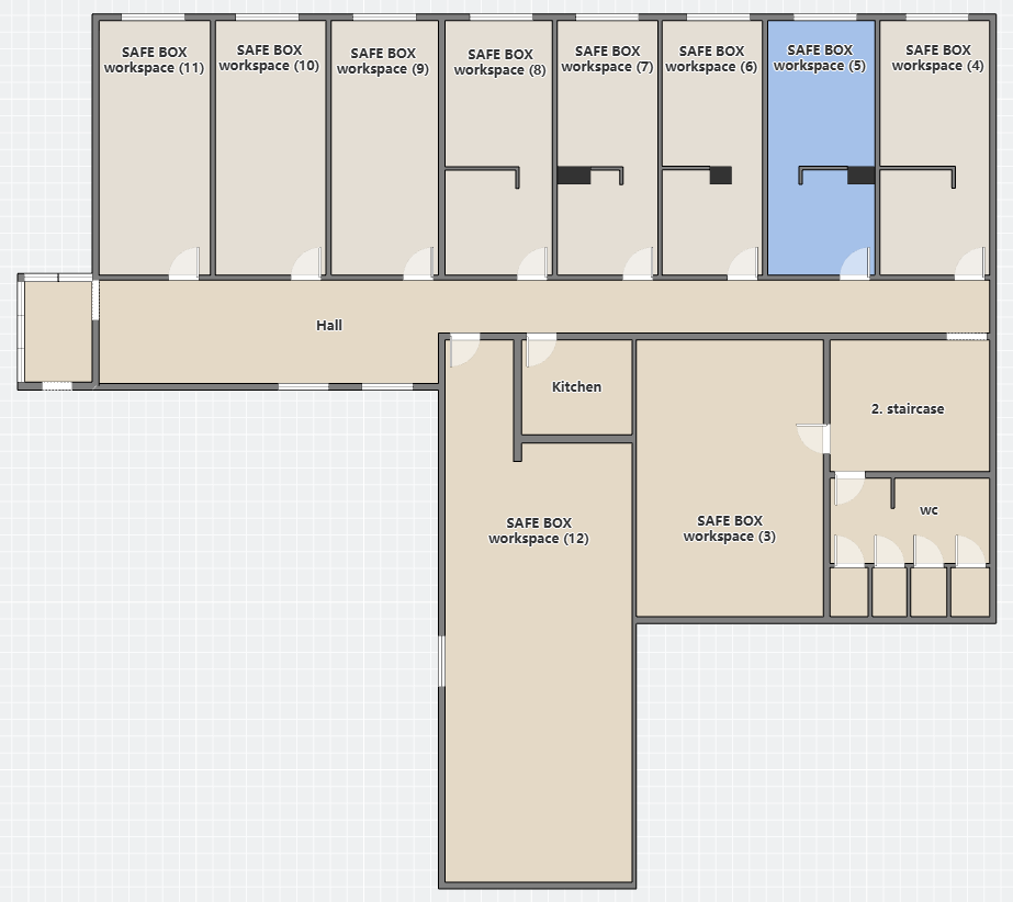 Trīspadsmit harmoniskas un modernas telpas vēsturiskā 1900.g. ēkā, Rīgā, Kr. Barona ielā 130/K9. SAFE BOX work space telpas tiek veidotas, lai sniegtu patīkamu, pozitīvu, drošu un produktīvu darba vidi Tavai profesionālajai izaugsmei.